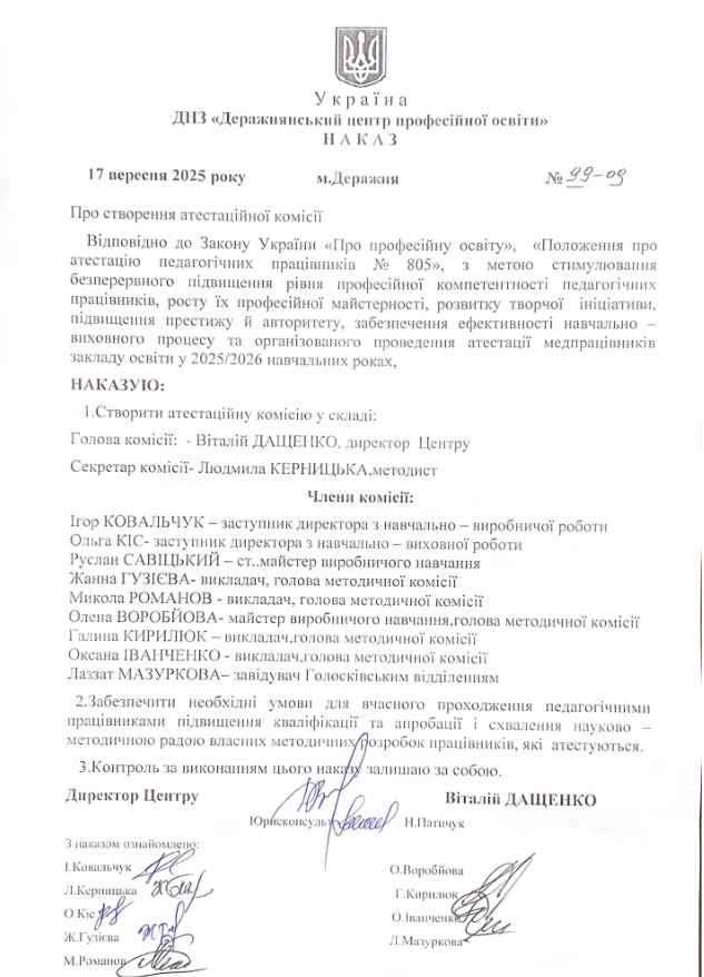 Атестація lydaker751@gmail.com – Електронна адреса для подання матеріалів, документів педпрацівниками, які атестуються Наказ про створення атестаційної комісії