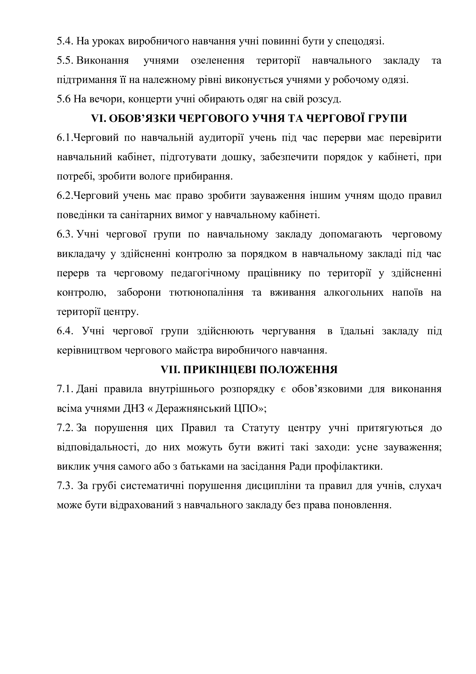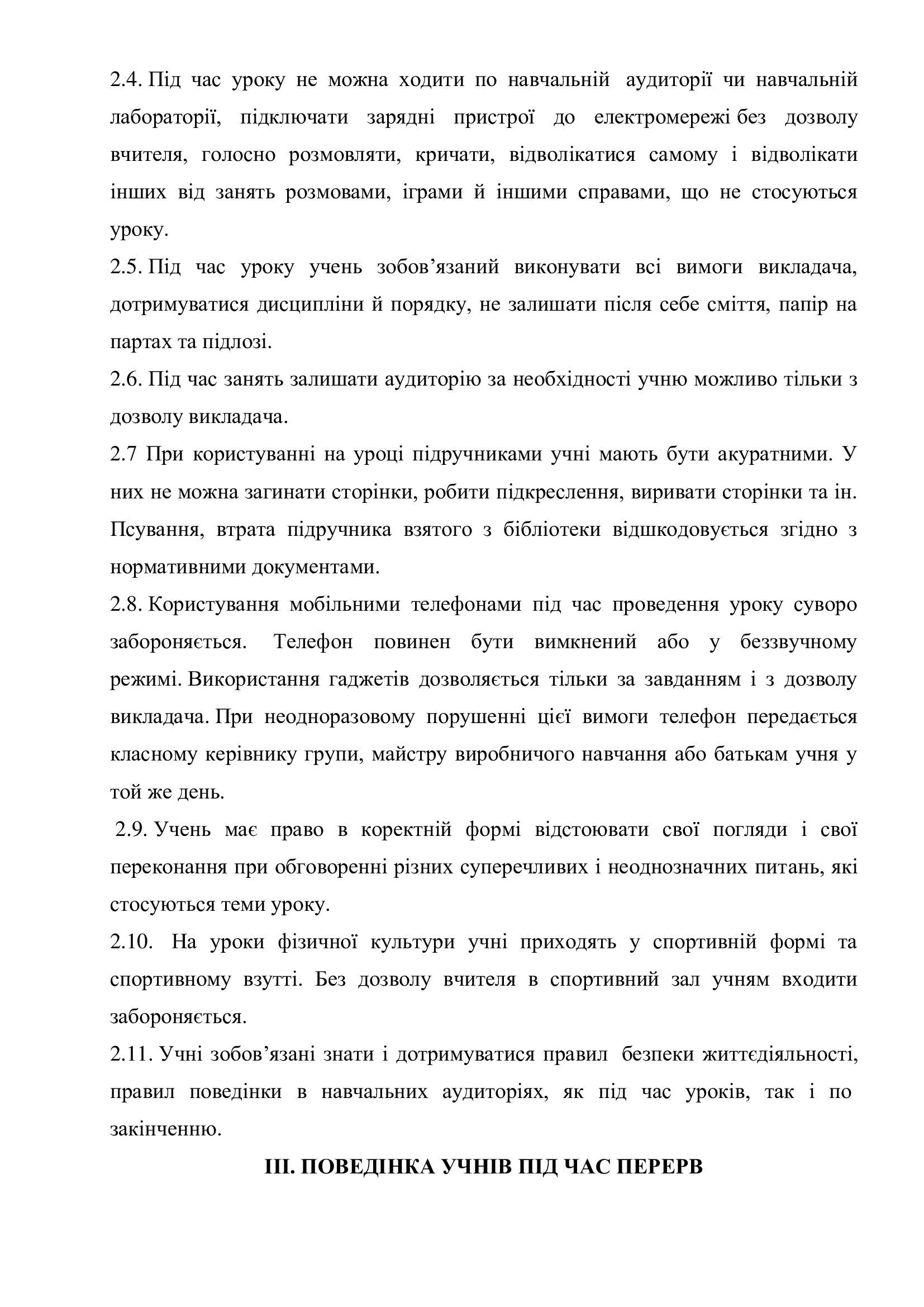 Правила поведінки здобувача освіти