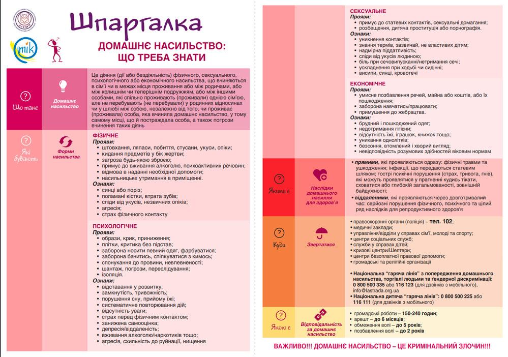 - Національна “гаряча” лінія з попередження домашнього насильства, торгівлі людьми та гендерної дискримінації – 116 123 (з мобільних) 0 800 500 335 (зі стаціонарних та мобільних)