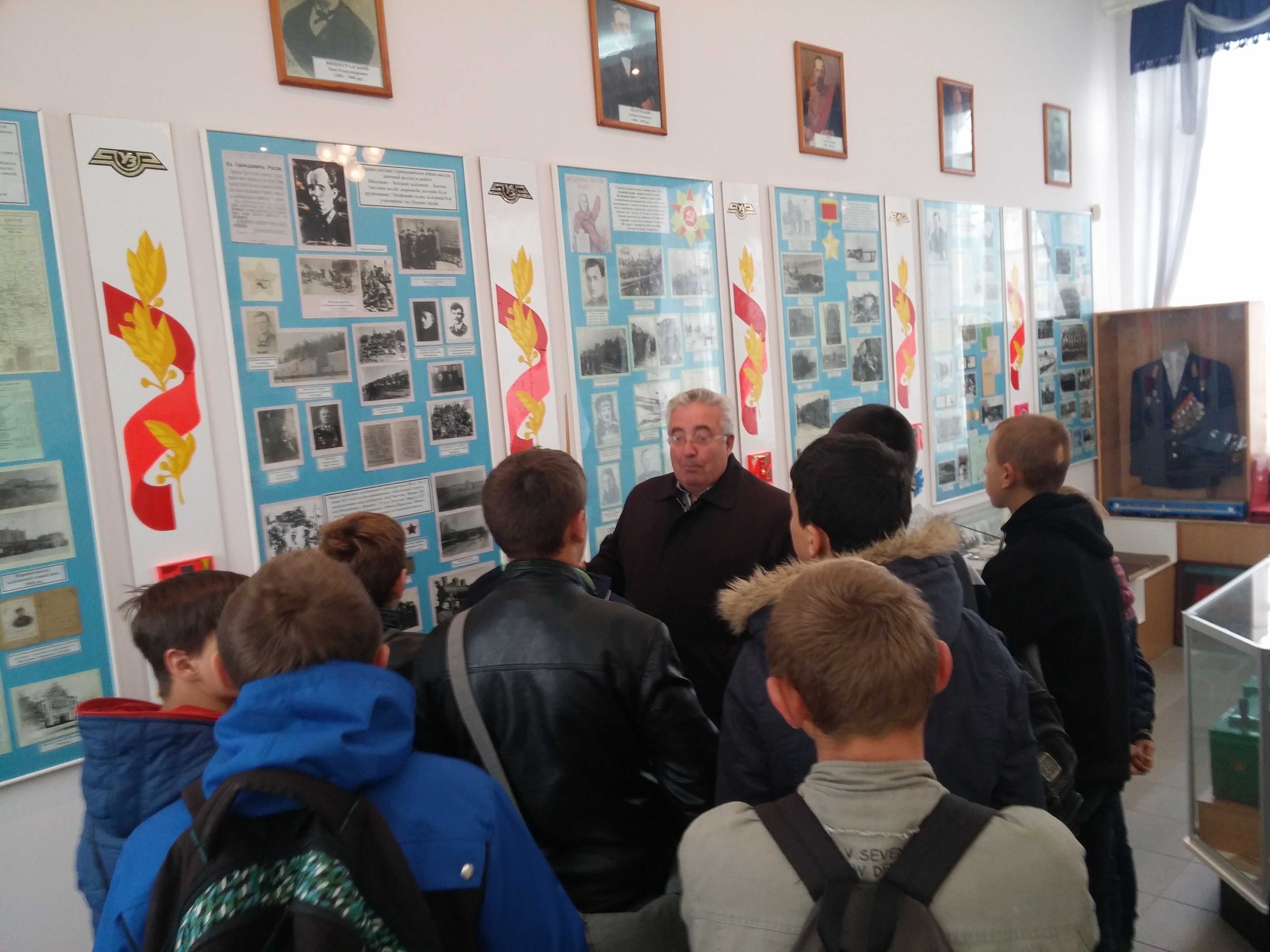 Тут екскурсію нам провів сам директор ліцею Микола Васильович Черкаський, який, як виявилося пізніше, був чудово знайомий з заслуженим працівником транспорту України, нашим земляком Борисом Степановичем Олійником. Микола Васильович зазначив, що деражнянці бережуть пам’ять про свого славетного земляка. У спеціальній експозиції музею відображено його життєвий шлях від учня школи до керівника Південно-Західної залізниці, першого президента Укрзалізниці. Окремо представлені його особисті речі, фотографії, документи, нагороди.