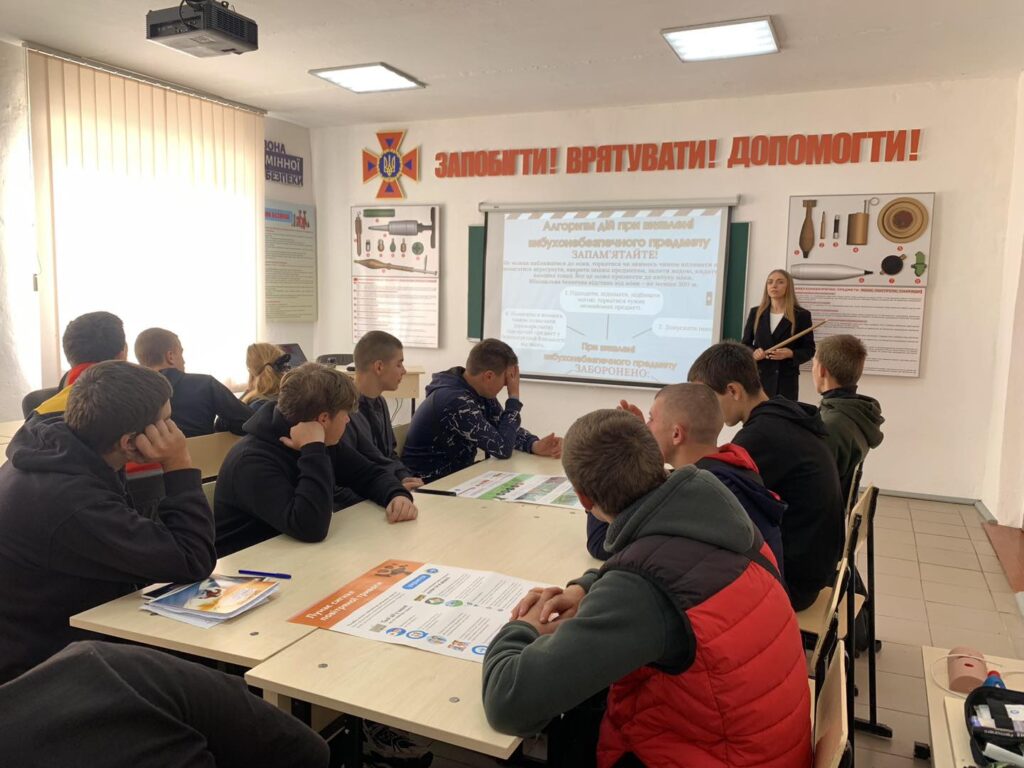 Саме з цією метою інженером з охорони праці, Наталією РОМАНОВОЮ в Голосківське відділення ДНЗ”Деражнянський центр професійної освіти”, був проведений інформаційний лекторій з мінної безпеки.